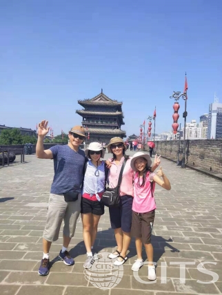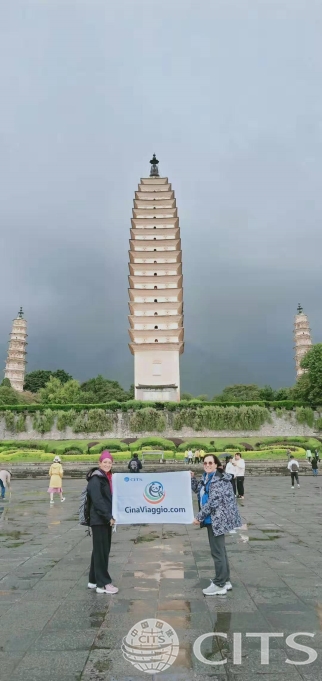 Italian Couple with American Guest at Xi'an Wild Goose Pagoda Square -